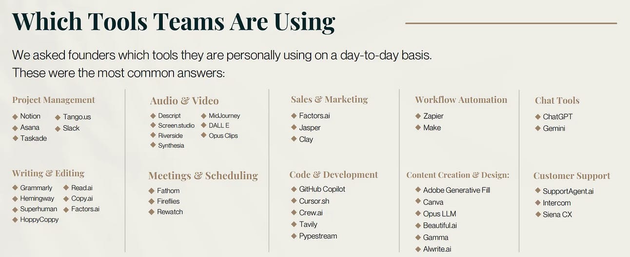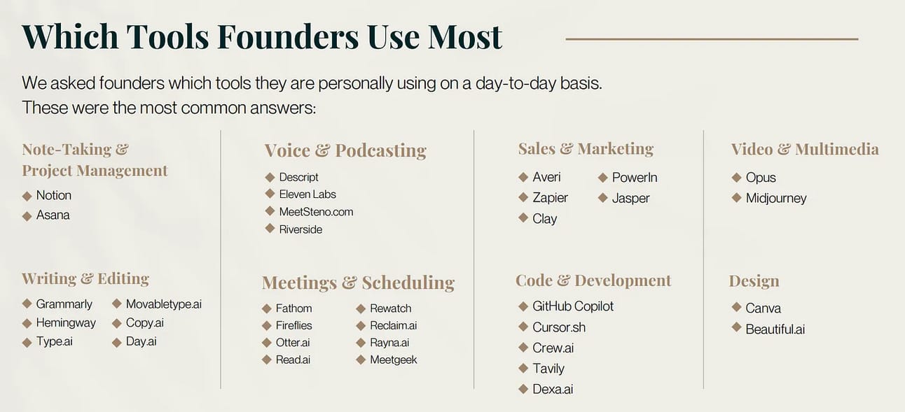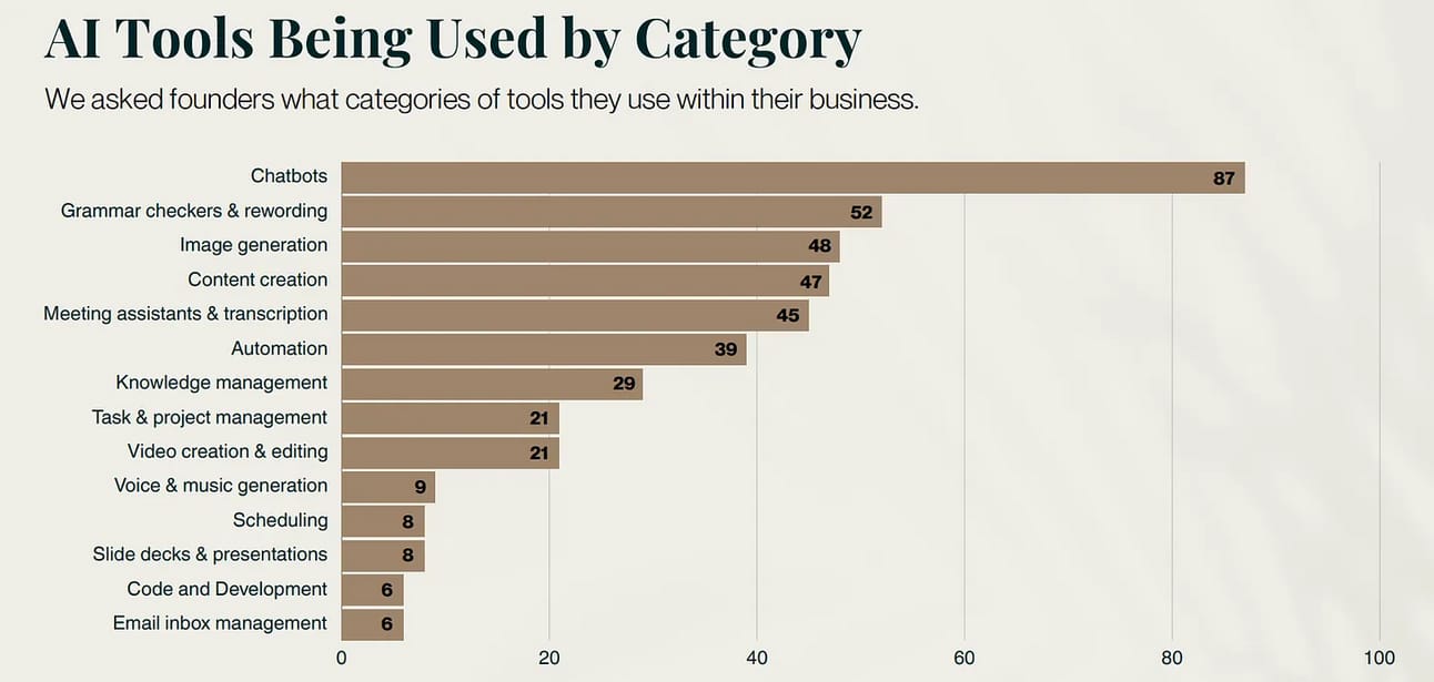 ¿Qué tipo de herramientas de IA son las más populares entre los fundadores y directores generales?