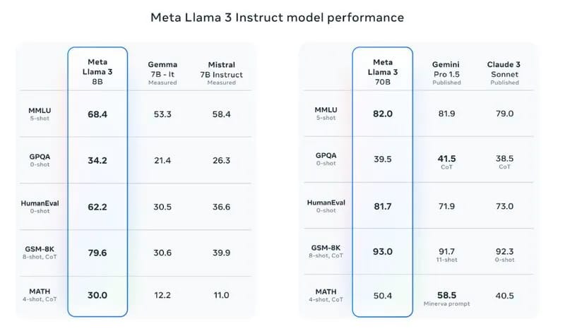 Detalles en el anuncio completo ➡️ https://ai.meta.com/blog/meta-llama-3/
