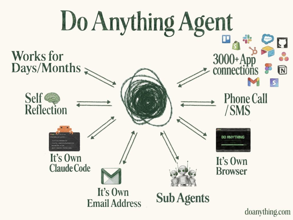 1. Do Anything presenta agentes de IA capaces de trabajar de forma autónoma durante meses. La startup acaba de lanzar la versión alfa de una nueva generación de agentes de IA diseñados para gestionar proyectos completos de forma totalmente autónoma durante varios meses. Cada agente tiene su propio nombre y dirección de email, lo que le permite actuar como una entidad independiente, sin hacerse pasar por ti en tus herramientas. Estos agentes se basan en un nuevo marco denominado MEESEEKS, diseñado para organizar proyectos completos en lugar de simples tareas.