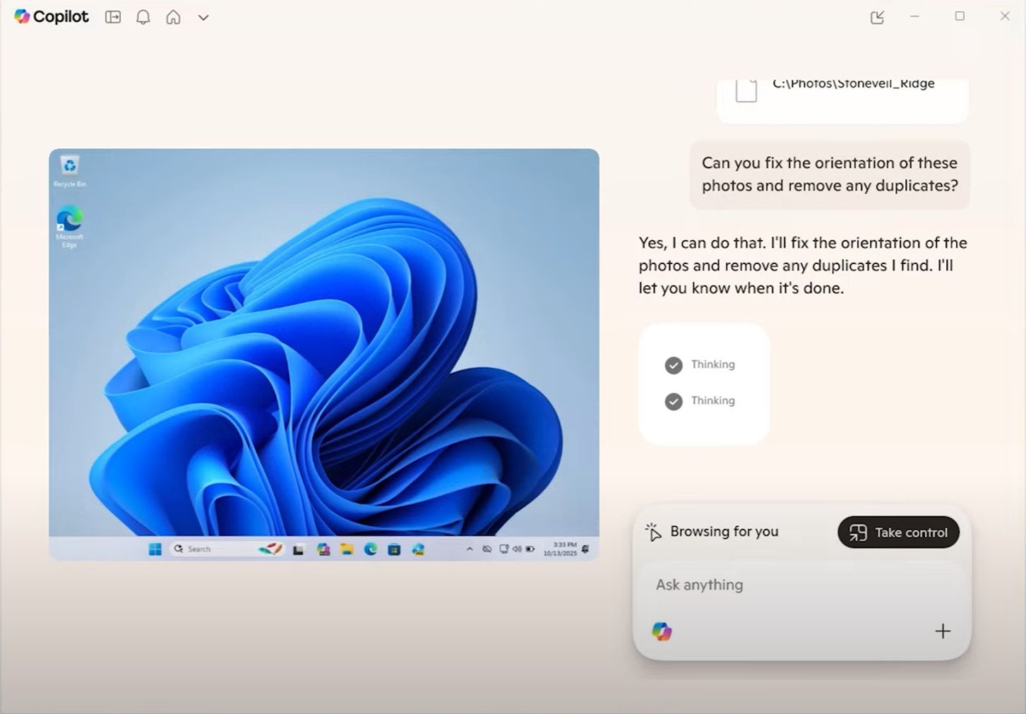 La empresa está probando Copilot Actions, una función experimental que permite que la IA realice tareas por ti, como reservar restaurantes o hacer pedidos de supermercado. Puedes activar el asistente diciendo “Hey Copilot”.