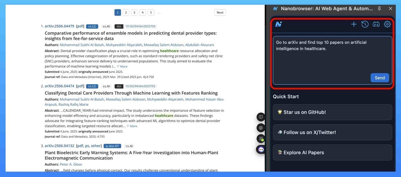 Ahora puedes asignar a Nanobrowser cualquier tarea que normalmente realizarías manualmente en la web.