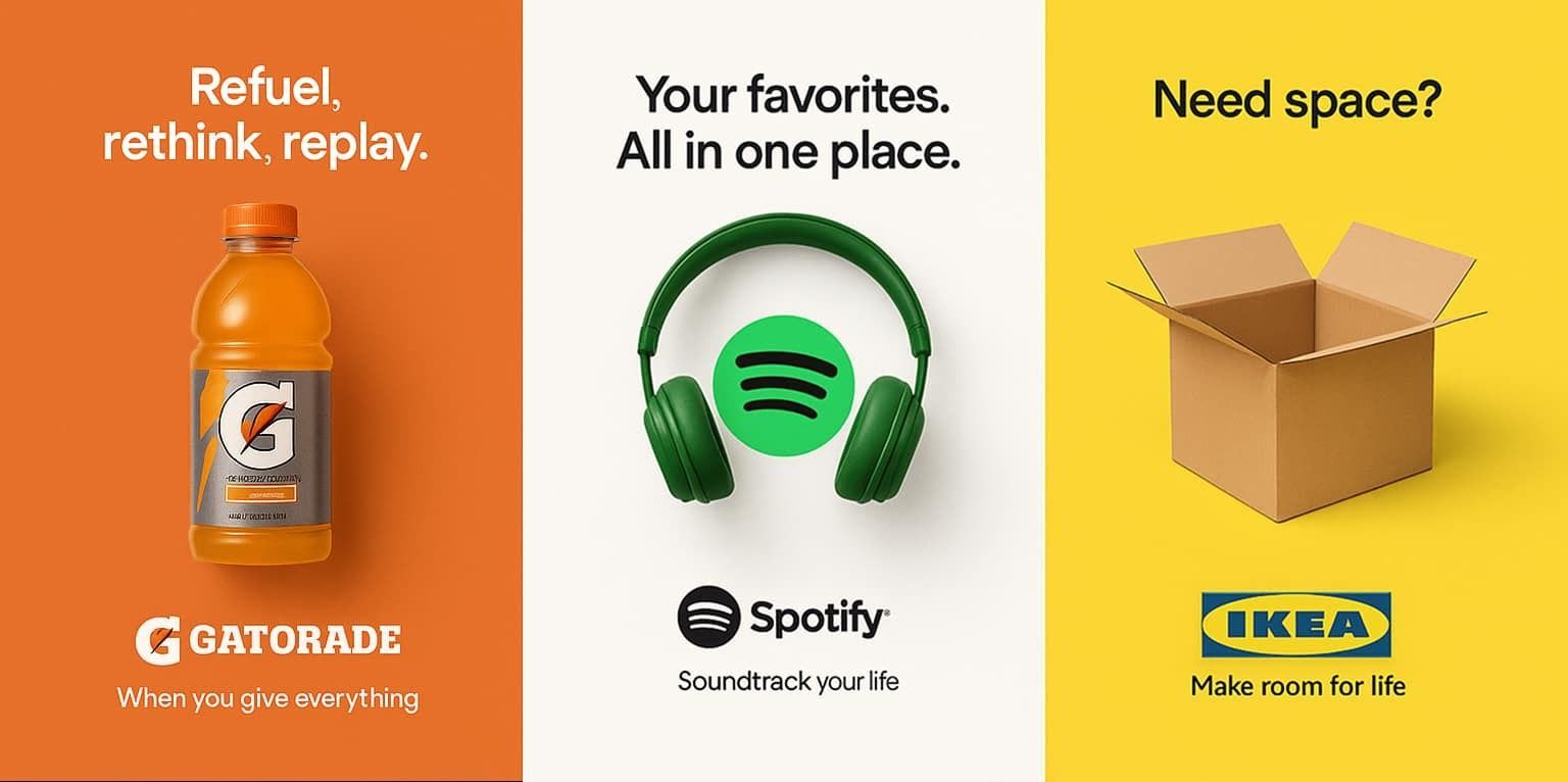 Ejemplo de prompt: «Crea un anuncio conceptual minimalista 1:1 para la marca: [MARCA]. No repitas el nombre de la marca en ninguna parte del texto ni de la imagen.