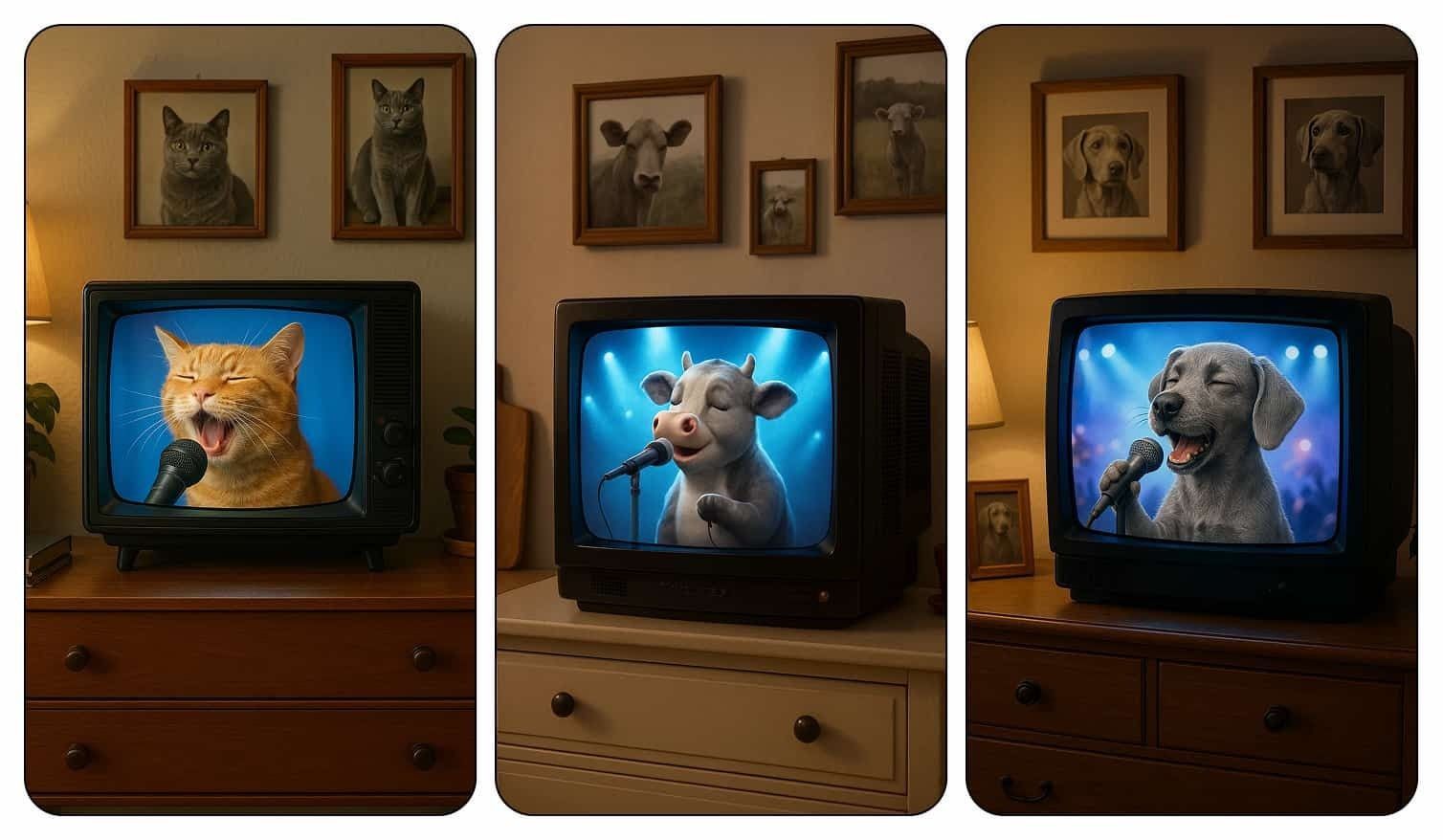 ChatGPT Prompt : Hay un pequeño televisor negro encendido, cerca del marco, centrado en él. El televisor está contra una pared clara, sobre un mueble con cajones. En el televisor se ve un concierto, y un simpático [animal] canta ante un micrófono. La habitación está iluminada y es acogedora, con fotografías enmarcadas de [animales] grises colgadas en la pared. Una luz azulada emana del televisor. La habitación es acogedora y está llena de detalles. El estilo es realista.⭐⭐⭐ Adquiere nuevos clientes y aumenta tus ingresos asociándote con nosotros